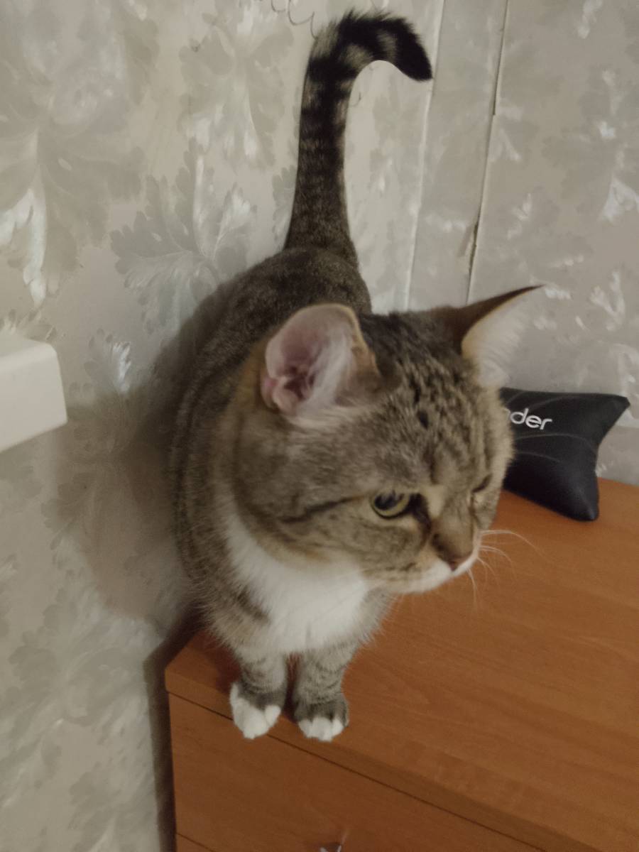 Здравствуйте, пропал наш любимый котик Тоша, упитанного телосложения, окрас: серо-черно-коричневый в полоску, белый подбородок, грудка, низ животика, белое пятнышко в районе грудной клетки и кончики л...