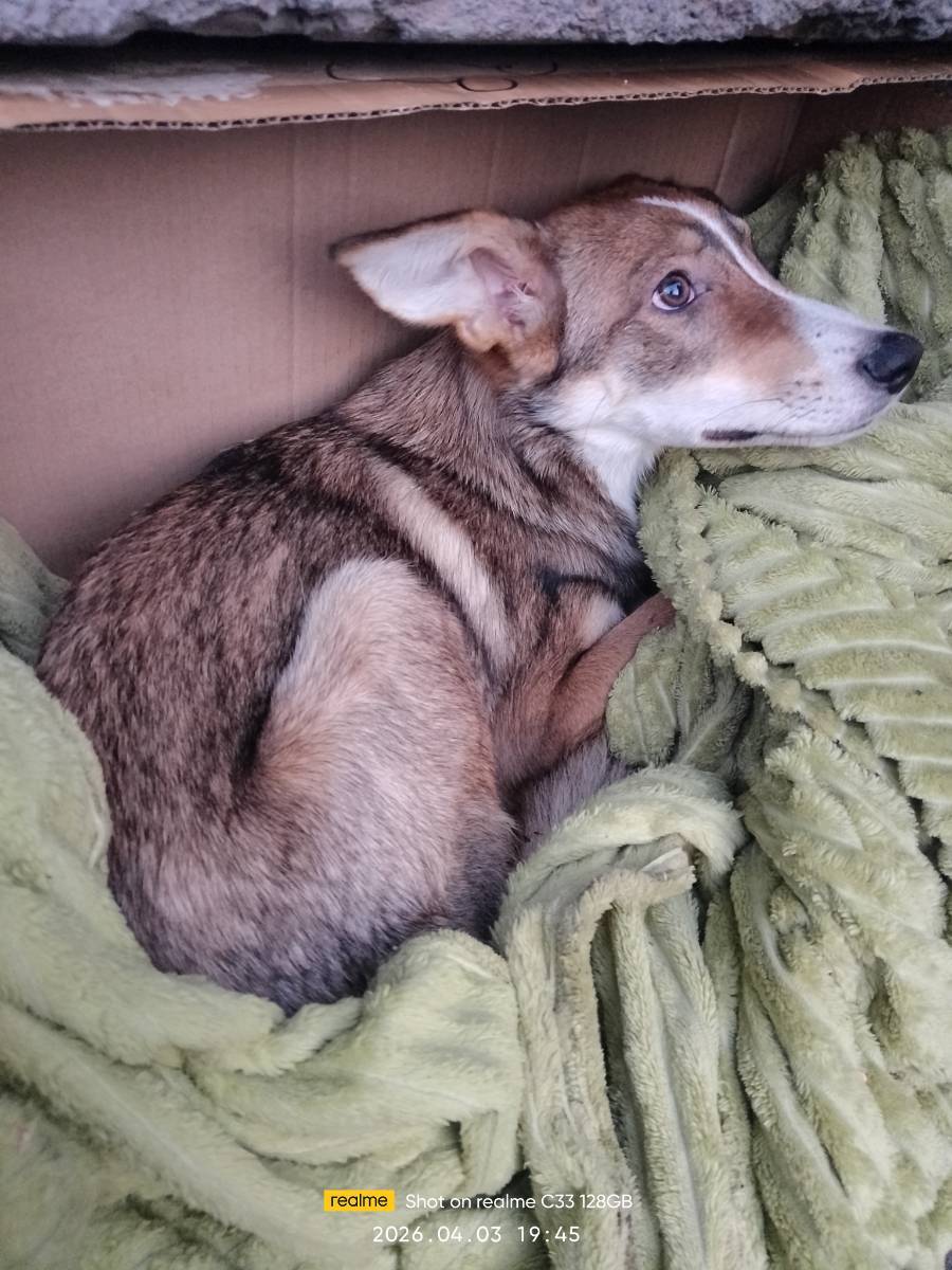 щенок поведу четыре а 5 месяца просим пожалуйста заберите его потерял дома его кто-то выкинул ночью он сейчас в коробке в городе Новокузнецке на улице транспортная 20 пожалуйста если вы его заберёте м...