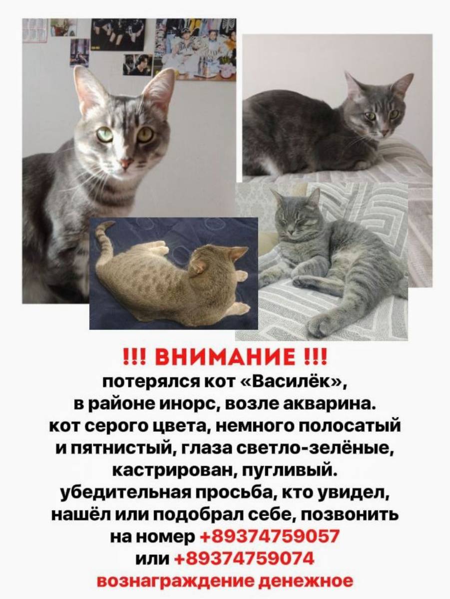 Василёк потерялся 5 сентября 2024 года. На данный момент может находиться где угодно, или с ним могло что-то случиться, но надежду не теряем.