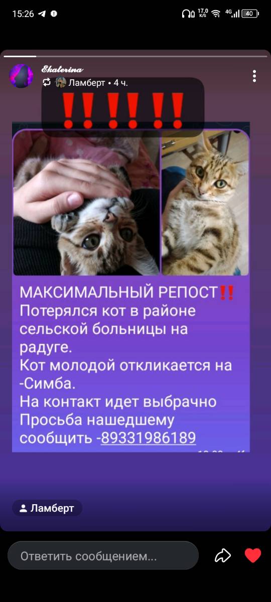 Найдена кошка! Пожалуйста, максимальный репост!Был найден кот или кошка в подъезде №1, на вид породистый (вероятно помесь шотландца). Цвет кота рыжий, цвет глаз желтые. Лижет нос, возможно вып...