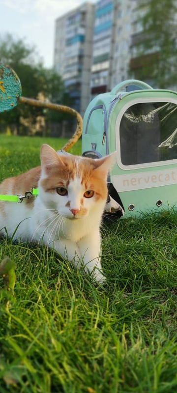 Потерялся рыже-белый кот. Убежал с салатовой шлейкой в районе озера Учхоз в г. Курск. Кличка: Персик. Если найдете, позвоните, пожалуйста: 89195548445