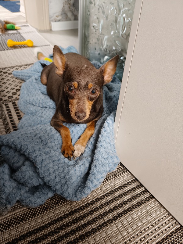 25.10 из клиники по адресу: ул. Углова, 1б сбежал той-терьер, чёрно-подпалого окраса, возраст 10 лет, откликается на имя Ричи. Нашедшему просьба связаться по тел. +79867255994, +78314653447