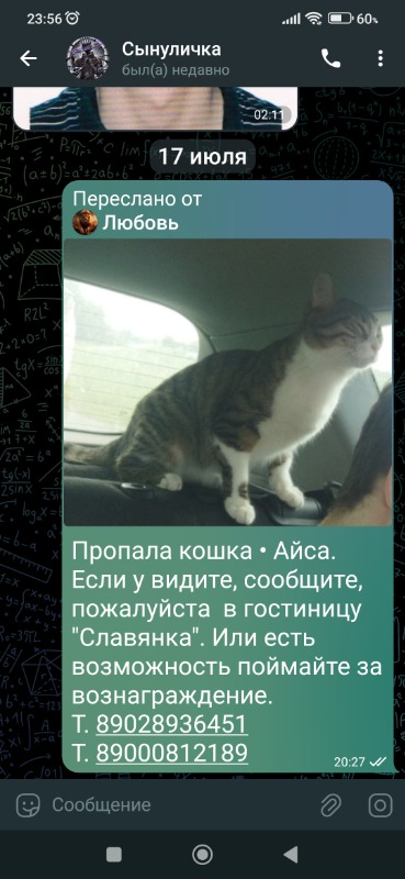 Потерялась кошка! Рядом с Багратиона 11, в ночь с 18 по 19 июня. Может отзываться на два имени: Ася или Юки. Кончик хвоста с одной стороны рыжий. В окраске преобладает рыжий оттенок Когда постаралас...