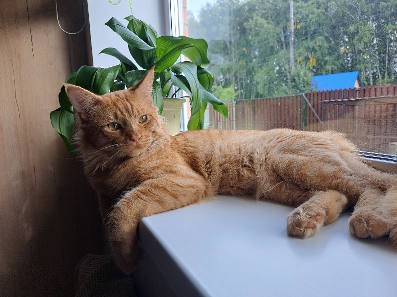 Рыжий кот, крупный, добрый, хвост пушистый