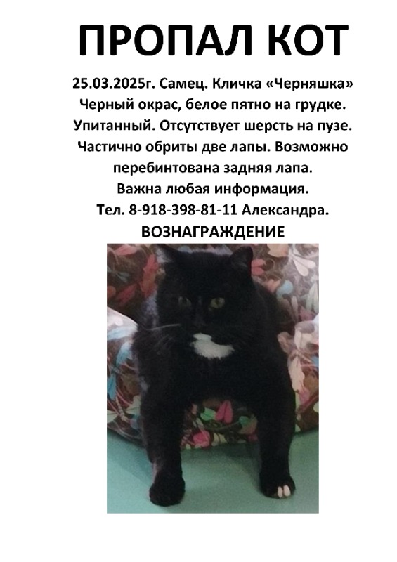 Пропал кот! Адлер; Село Веселое. ВНИМАНИЕ!!: сейчас кот был побрит, ввиду жаркой погоды и улучшения его здоровья. По этой причине у него есть шерсть на лапках, голове и кисточка на хвосте. Кот глухой,...