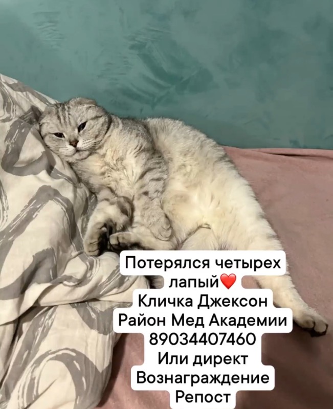 Пропала кошка! Пожалуйста, максимальный репост!вознагрождениеИмя хозяина: захарАдрес: Украинская улица, 22 с1, КисловодскПодробная информация здесьhttps://pet911.ru/rl980911Потеряли или нашли ...