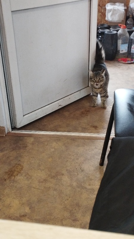Прибилась молодая кошечка, сидела в сильный дождь под кустами на первом кладбище и кричала, я забрала её к нам в магазин ГРАНИТНАЯ ЛАВКА, согреть и покормить, но второй день она здесь живет и никуда б...
