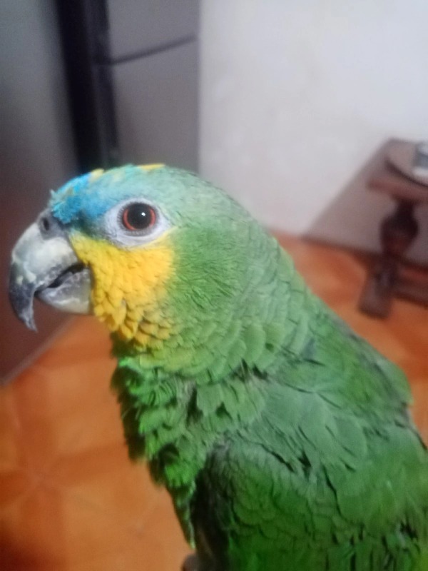Крупный попугай зелёного цвета, пугливый, породы венесуэльский Амазон. Скорее всего травмированный, т.к. упал с высока. Может отзываться на кличку Проша, а также на фразы«Проша хороший» «орешек» «лети...