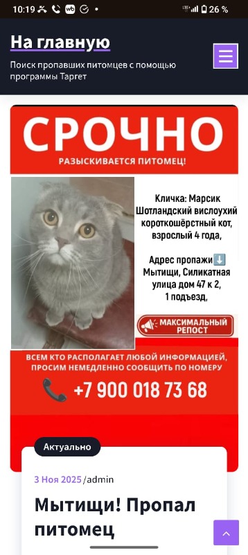 Потерялся кот 28 октября. Территориально: Силикатная 47к 2 , 1 подъезд. Пожалуйста, если кто увидит возьмите его себе и позвоните нам!!!!Вознаграждение гарантированно!