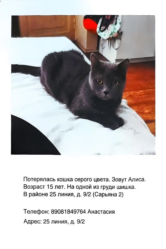 Потерялась кошка по кличке Мася,17.08.25. Военвед,район кольца Таганрогская/Малиновского. Вислоухая,не крупная,стерилизована. Очень ждем дома 🏠 Вознаграждение гарантирую ‼️ 89185424616, Наталь...