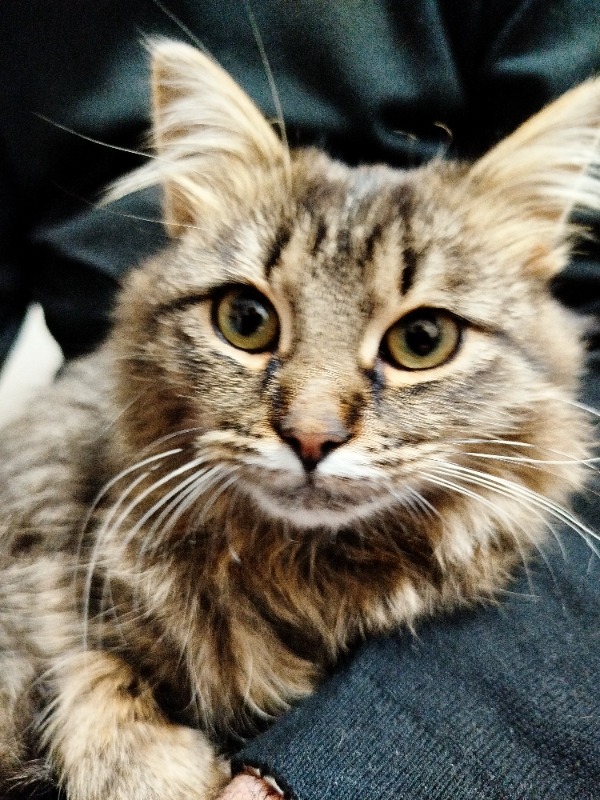 Найден котенок в д.Дубровки Калининского района. Ласковый, с ошейником и QR кодом.