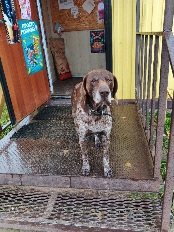 Большая породистая собака, коричневого цвета, с коричневыми пятнами, висячи ушами, черный ошейник, вроде бы мальчик Добрый, ласковый, спокойный Ходила около райпо магазина и мусорки в Сокулях, бегала ...