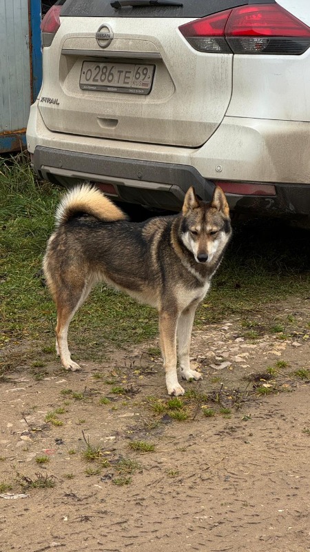Деревня Притыкино, Кимрский район, Тверская область. Найдена собака. Бегала по деревне около недели. С 6.11.2025 прибилась к нашим 2-м собакам на прогулке. Говорят, восточно-сибирская лайка. Молодая с...