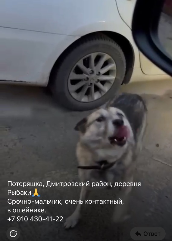 Потеряшка !! Чей ?? Дмитровский район, деревня Рыбаки🙏 Срочно-мальчик, очень контактный, в ошейнике. +7 910 430-41-22
