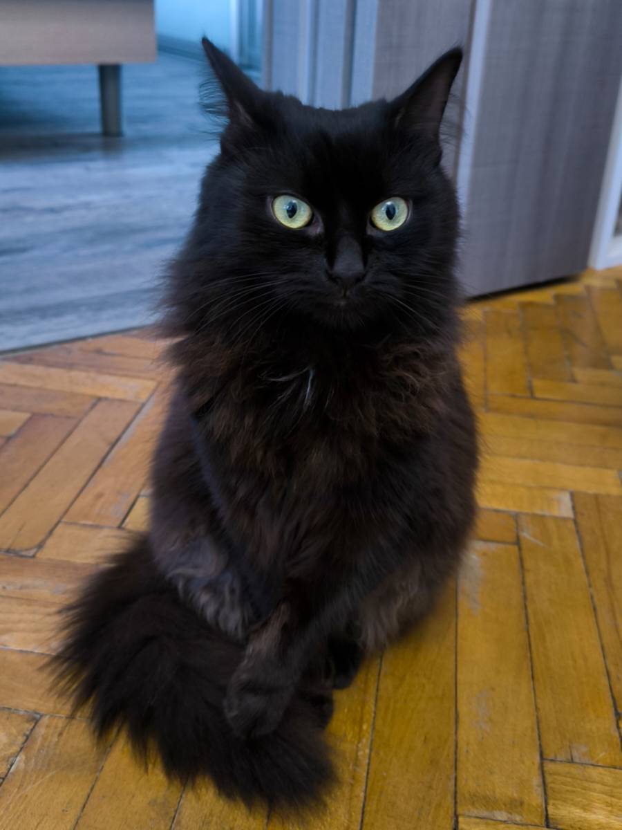 15.11.2025 найдена кошка Пермь, Самолетная, 26, подъезд 2. На вид около 1 года. Ласковая, контактная, домашняя. Возможно, потерялась из соседних домов по ул. Стахановской.