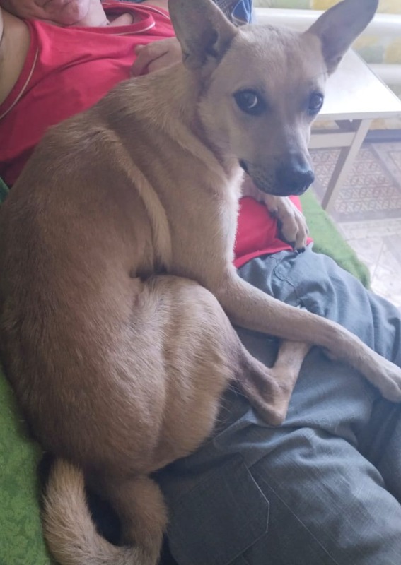 Девочка , зовут Фиби , отзывается на Фиби Эла Эла . дворняжка , похожа на маленькую овчарку , тигровый окрас. подзывать аккуратно, боится людей . может быть рядом с кошками