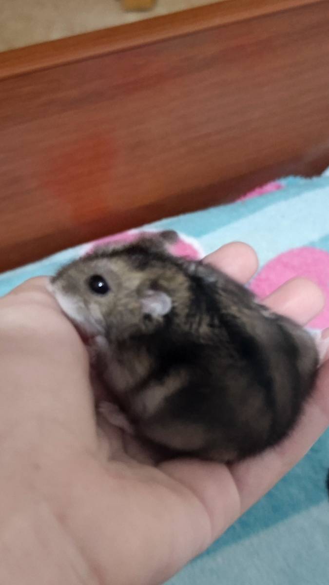хомячок джунгарик девочка зовут Ника чёрно-рыжий окрас и чуть-чуть белый есть