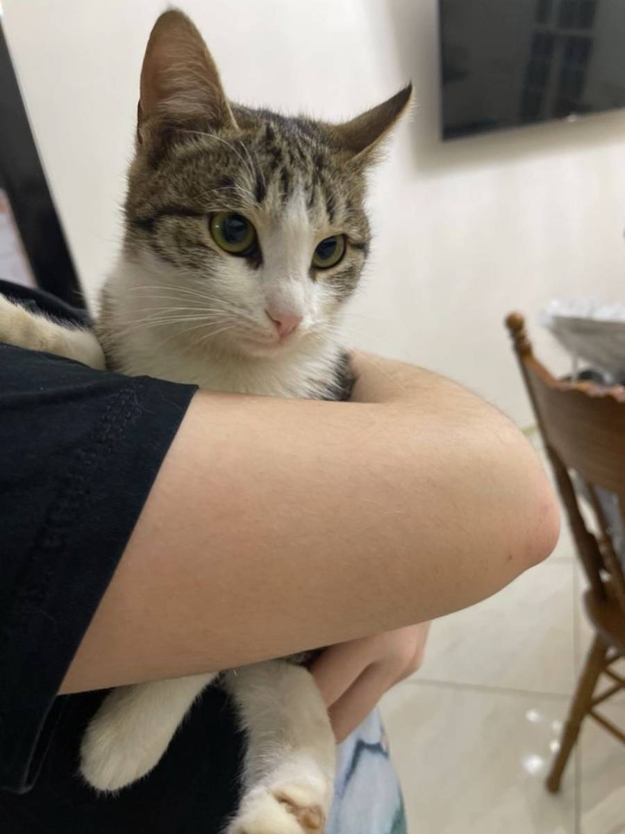 игривый и активный котёнок ищет дом, (потеряшка)Окрас табби (полосатый) девочка, отмеченная форма М на лбу