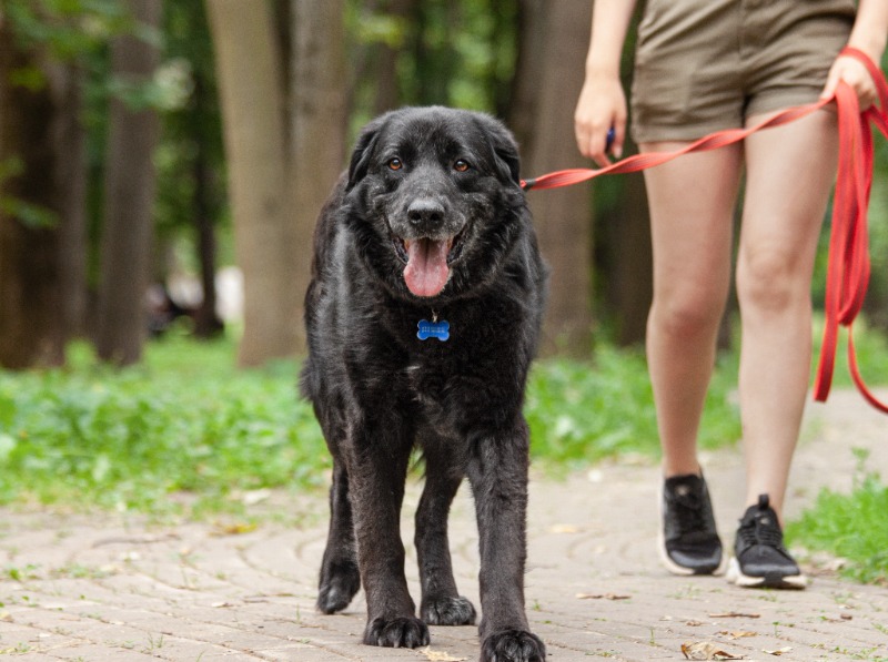 Рокки около 9-10 лет, рост в холке 65см, а вес 37кг. Привит, кастрирован, чипирован