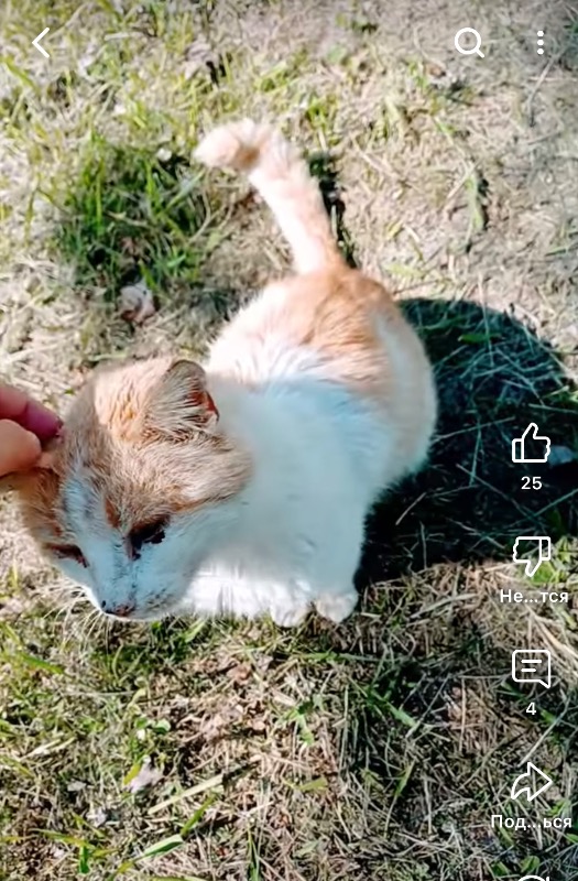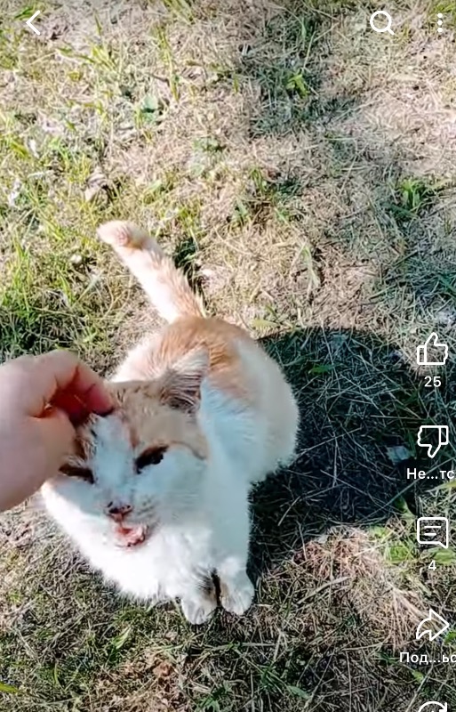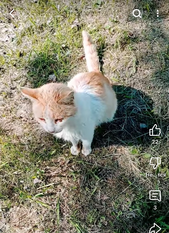 Котик. Рыже-белый окрас. Живет во дворе. Очень ласковый. Получил сильную травму по голове прося еду. Готова вылечить котика и передать в добрые ручки или хозяевам если найдутся.