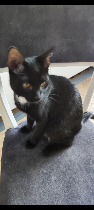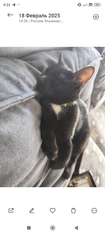 Молодой котик Мур, чёрный, с белой грудкой, с зелёным ошейником, белые волосики на пузике. Урчит, мяукает редко, на кыс-кыс несётся кушать. Очень любит детей, мурчит и обожает гладиться. Помогите, пожалуйста, найти нашего любимца. Дружба-2, Заволжье, ул Пражская 13А