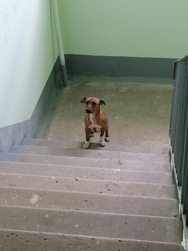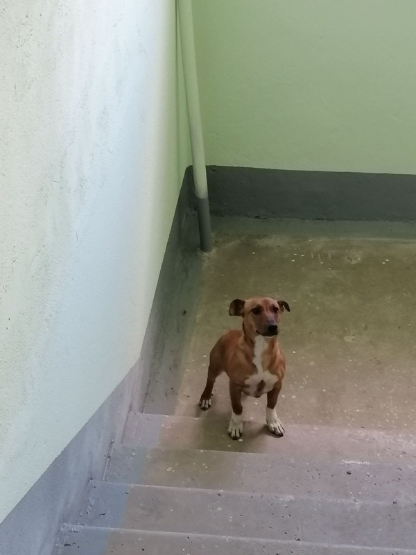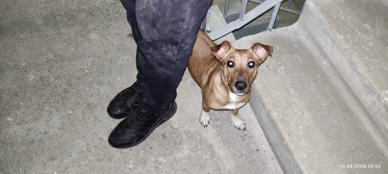 Найдена собачка, девочка, третий день сидит в подъезде. На вид ухожена, чистенькая. Сидит на 9-ом этаже в первом подъезде на улице Перекопская. Хозяева отзовитесь. 8 910 589 24 17 Владимир.