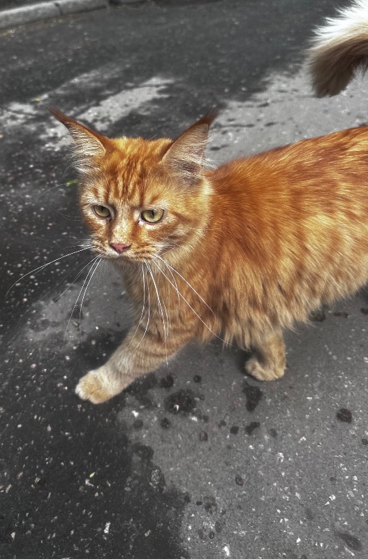 Разыскивает прежних хозяев рыжая кошечка породы Мейн Кун. Уже неделю обитает на улице, Московский район, Ул.Евгения Никонова. Контактная, ласковая. За это время стала очень худенькой, только несколько дней подходит кушать. Но улицы все равно боится. Очень нужна помощь в распространении данного объявления🙏