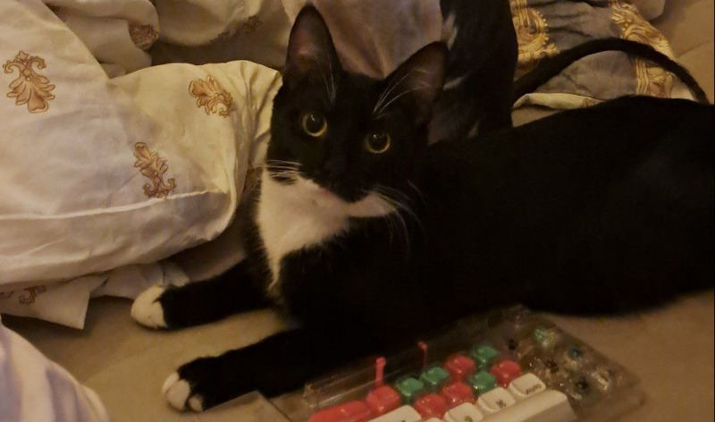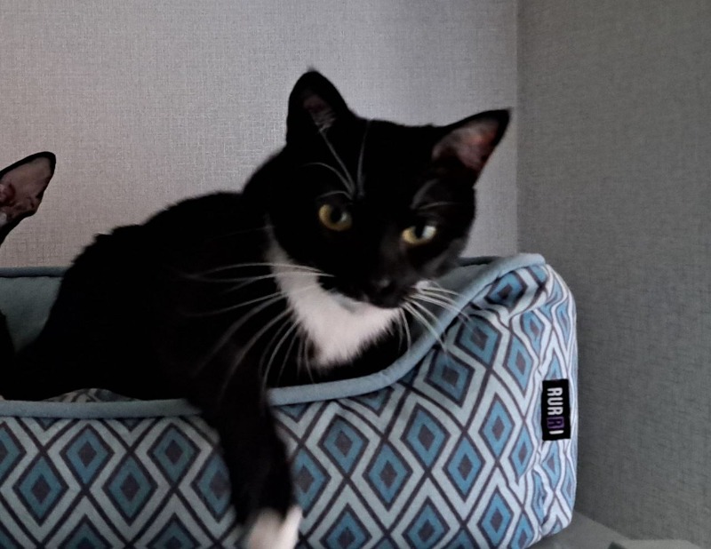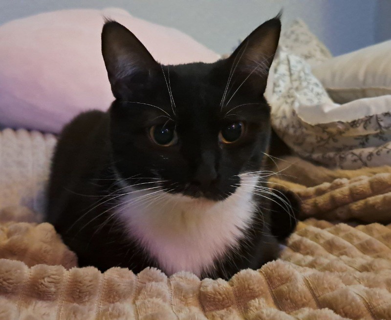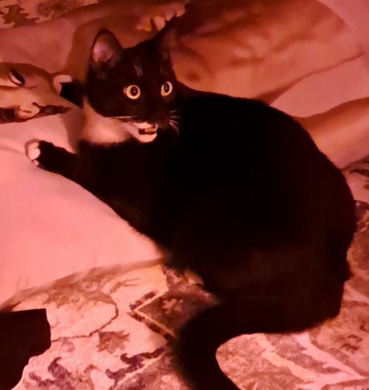 🔸Черная кошка, с белой грудкой и белыми носочками.