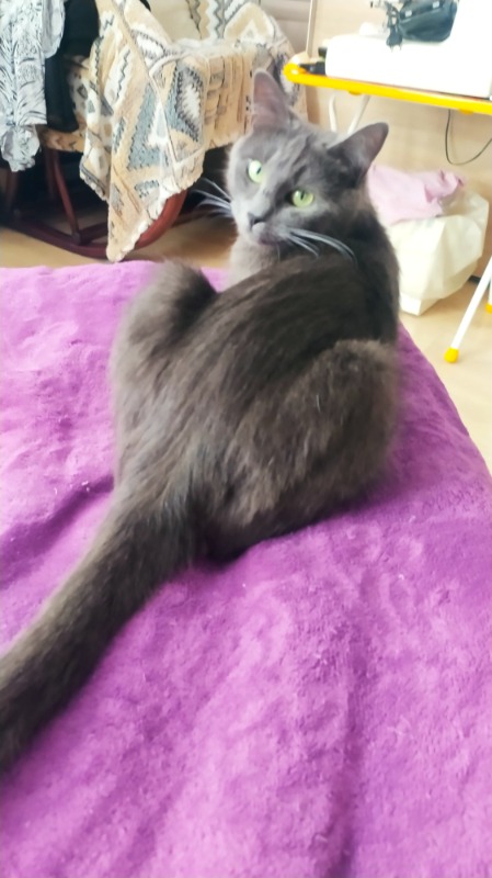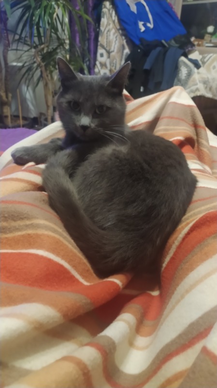 Потерялась кошка, девочка, Алиса, в Павлово-посадском районе, д. Казанское, СНТ "родник", выбежала на улицу из дома, дымчатого окраса, породы русская голубая, худенькая, пугливая и добрая, верхний правый клычок немного отколот.