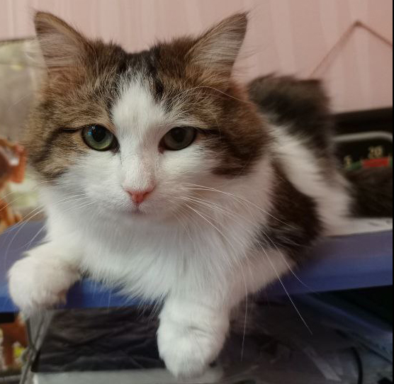 Особенности: пуглив, стерилизован, стрелки у глаз (как макияж), есть мех на лапках со стороны подушечек