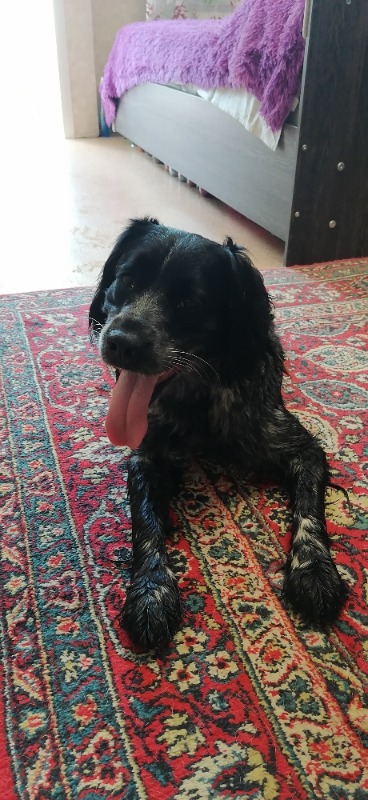 Найдена собака. Советский район угол Карбышева и Мориса Тореза. Кабель, черно белый. Тел +79277553963 Роман .