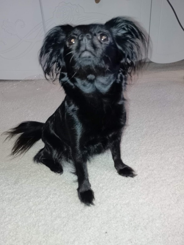 черного цвета (как уголек), ушки хвостиком (если поднимает их, то волоски в разные стороны), хвостик такой же как и ушки ( волоски в разные стороны), маленького роста, дружелюбная, трусишка.