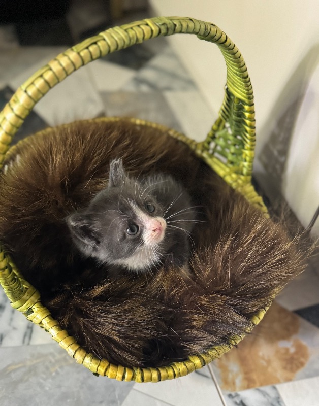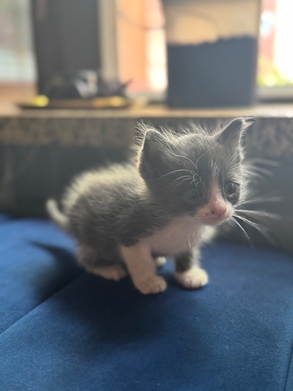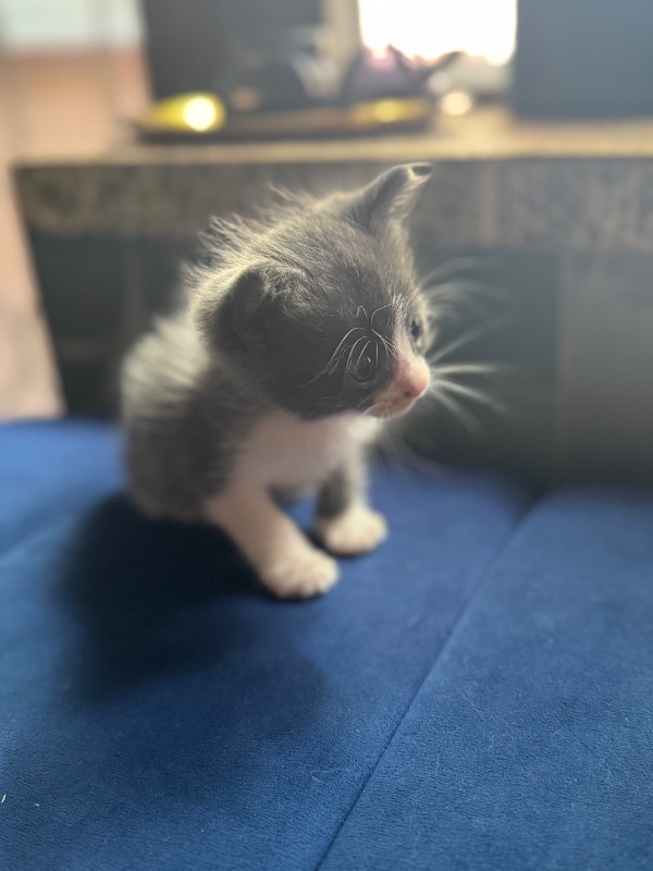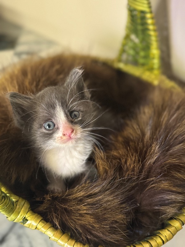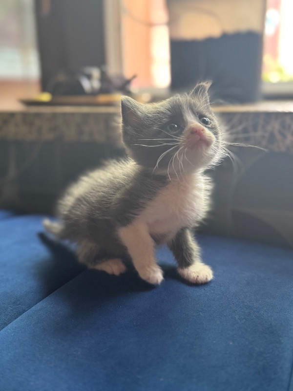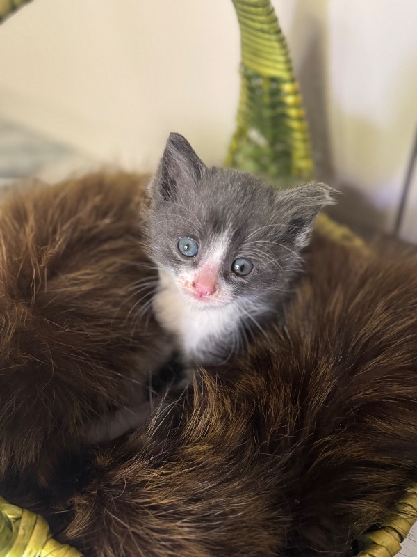 Котенок мальчик в добрые руки. Цвет дымчатый серый с белым. Будет пушистый. Возраст 1 месяц. Еда, лоток самостоятельно. К людям дружелюбный, игривый. Анна +79787933693 Симферополь