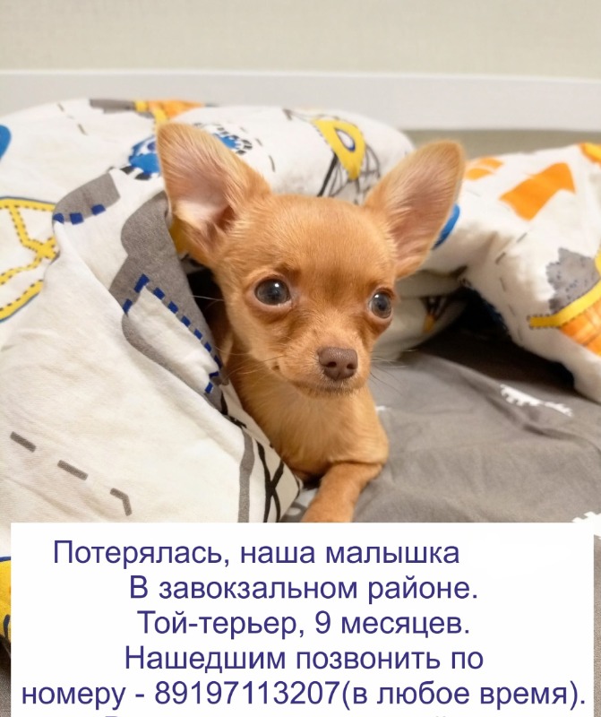 Потерялась собака, кличка - Мила. В городе Чайковский в завокзальном районе 1.07.2025 г, может находиться в любом районе. Той-терьер, 9 месяцев (она совсем маленькая, как белочка). Нашедшим позвонить ...