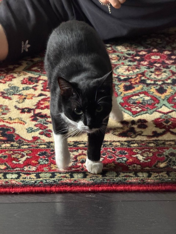 Описание: Кошка беспородная, чёрный окрас с белой грудкой, плотненькая, но не очень большая, возраст 3 года. Особые приметы: желто-зелёные глаза, белые лапки грудка и мордочка.