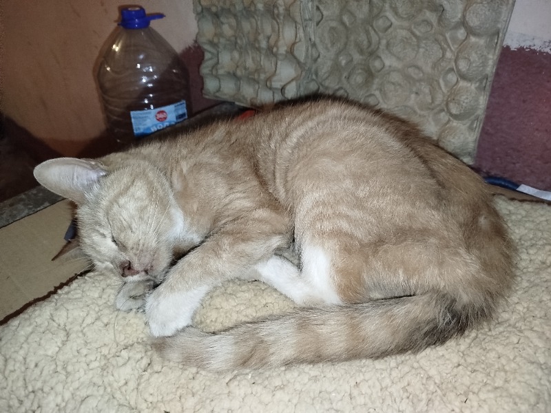 Центральный район, ул Боровая. Вчера 29 августа утром в подъезде оказалась кошка или кастрированный кот. Рыжие животное, но на фото плохо видно. Животное грязное и где было беленькое, там тёмненькое. Очень ласковое животное, длинные лапки, грациозное
