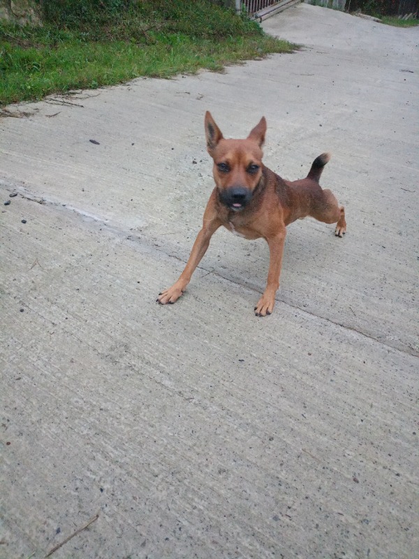 Найден молодой кобель. Небольшой, хвост купирован. Район Верхнениколаевское