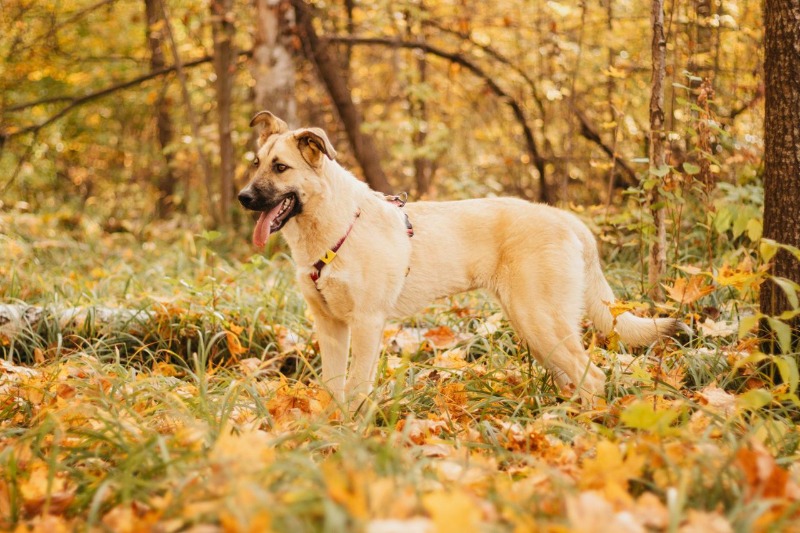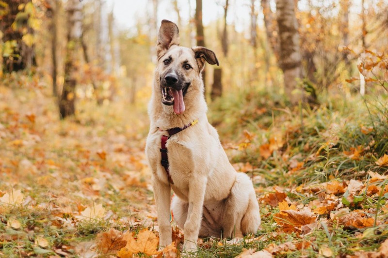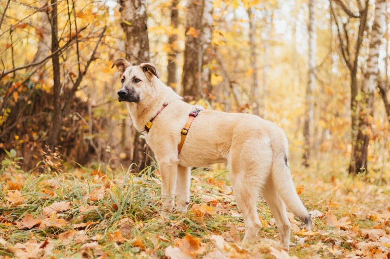 Алексе примерно 8 месяцев, рост в холке — 53 см, стерилизована, привита, обработана от паразитов.