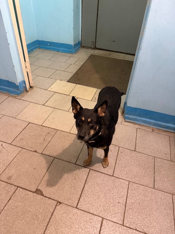 Здравствуйте! Нашли собачку в микрорайоне южном, очень воспитанная, сильно скулит, совсем щенок, но с ошейником Если есть возможность выложите пожалуйста в домовые чаты🙏🏼 Сидит в подъезде Софьи Перовской 44/2 5 подъезд