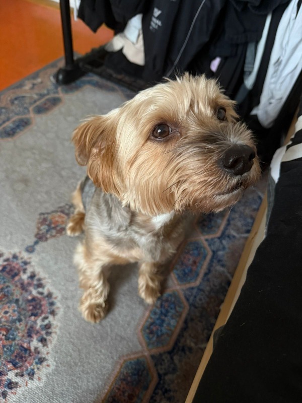 Найдена собака 1 марта 2026 года Йорк мальчик с ошейником. Сергиев Посад район Звездочка улица 1-я Рыбная 82. Хозяева отзовитесь. Светлана +79001437997