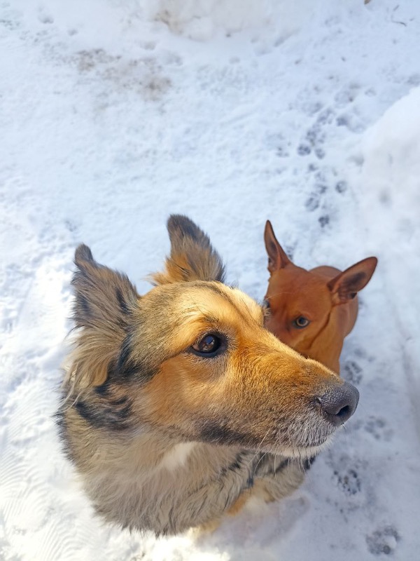 найдены 2 собаки, один рыже-коричневая маленький короткошерстная (точно мальчик) , вторая среднего размера пушистая. Не уходят, явно потеряны и давно друг с другом. Возможно домашние откуда конкретно пришли неизвестно, район авиастроительный. Пока что живут у нас во дворе