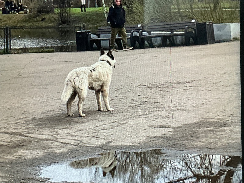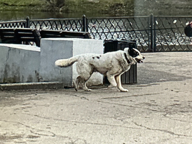 12.04.2026 г. Ботанический сад, Главный вход, большое здание администрации, вокруг пруда бегает большой, белый пес с ошейником. Мордочка черно-белая. Испуган. Метается из стороны в сторону, но место не покидает. Скорее всего потерялся. Хозяин найдись!