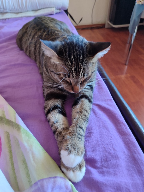Полосатый кастрированный кот. Потеряли в лесу в районе посёлка Прибрежный 14 августа 2024 года. Надеюсь на чудо. Может кто увидел по дороге и увез в Тулун.