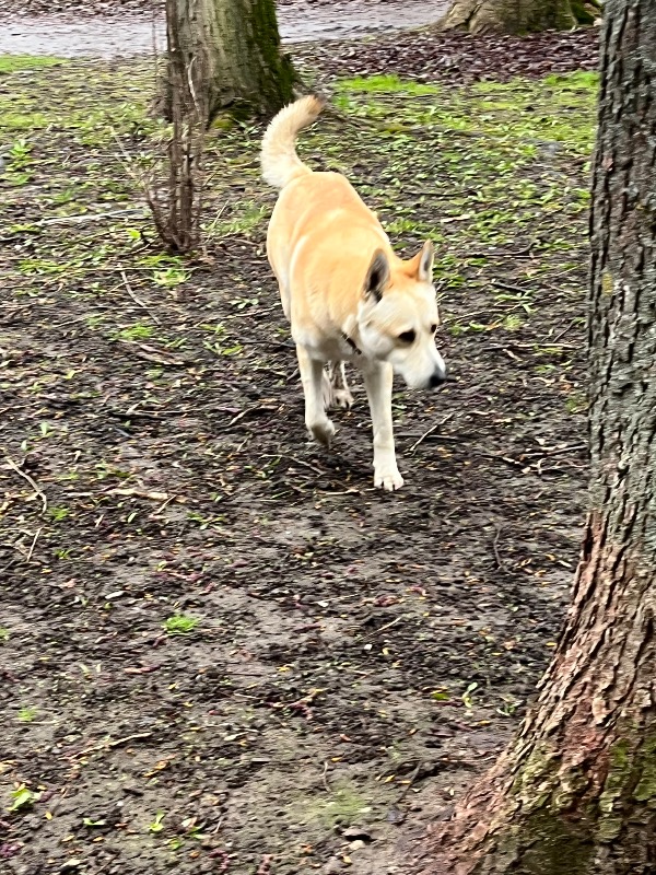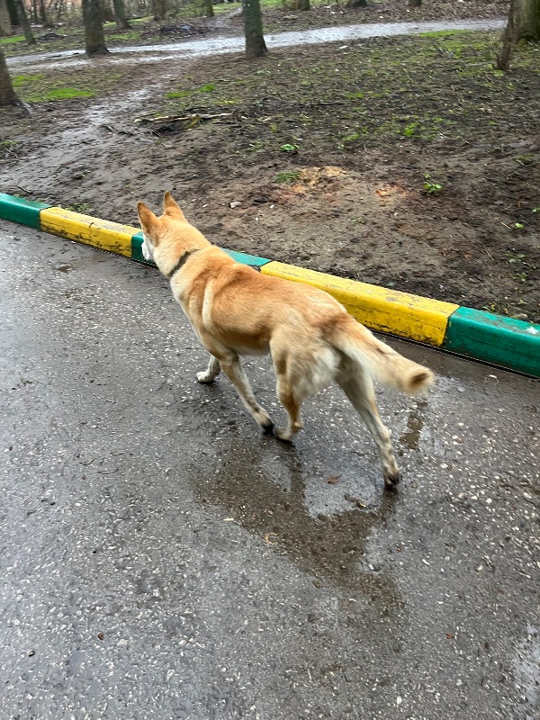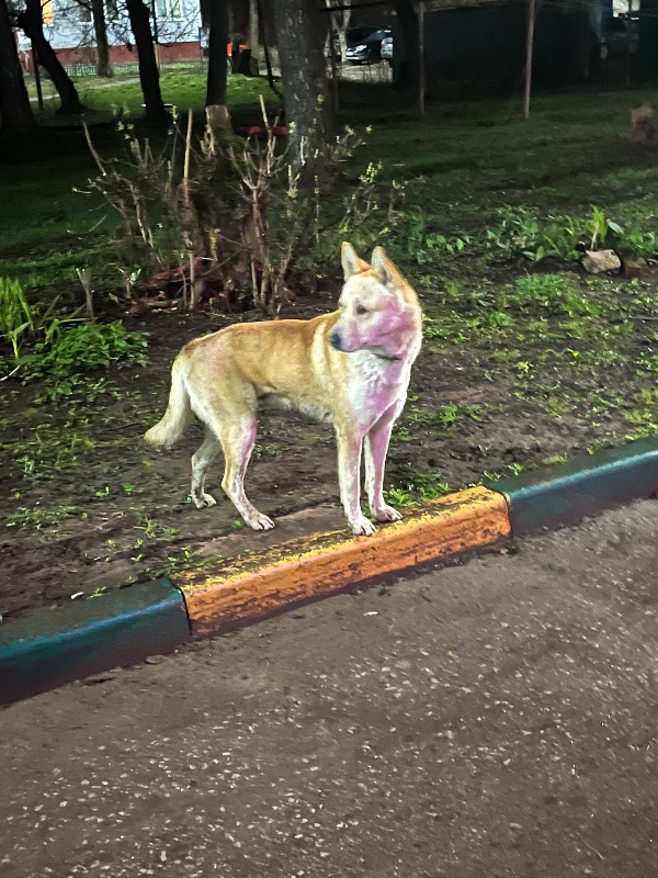 НАЙДЕНА СОБАКА. мальчик уже два дня ходит возле нашего дома. ошейник есть, зеленого цвета. собачка находится в районе мясново, парашютный проезд 38б