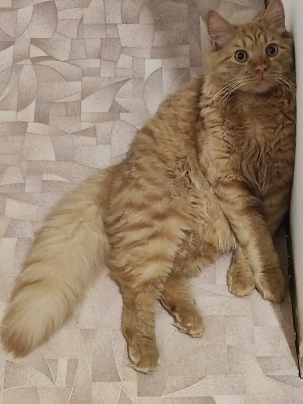 Потерялся в районе ул.Подбельского(центр) годовалый рыжий котенок с пушистым шикарным хвостом.