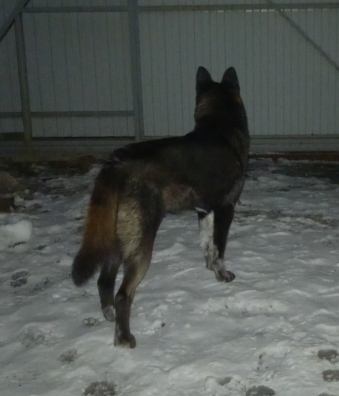 Крупная черная с белыми лапами, убежала где- то в 16 часов на ул. калинина и бегает в окресностях